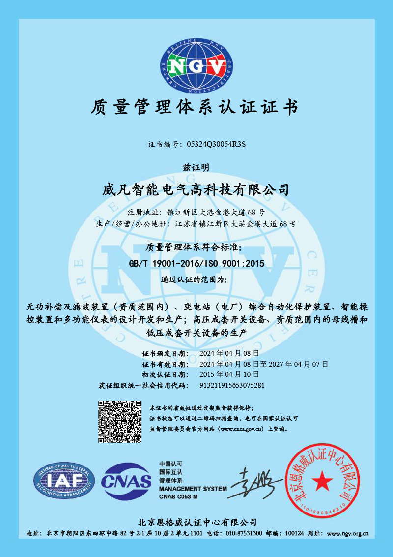 威凡智能電氣高科技有限公司主要業(yè)務(wù)版塊包含:儲能事業(yè)部、電能質(zhì)量事業(yè)部、成套電氣事業(yè)部、智能母線事業(yè)部、自動(dòng)化事業(yè)部、新能源開發(fā)及電力工程總包公司等,曾多次被評選為國家級高新技術(shù)企業(yè)。